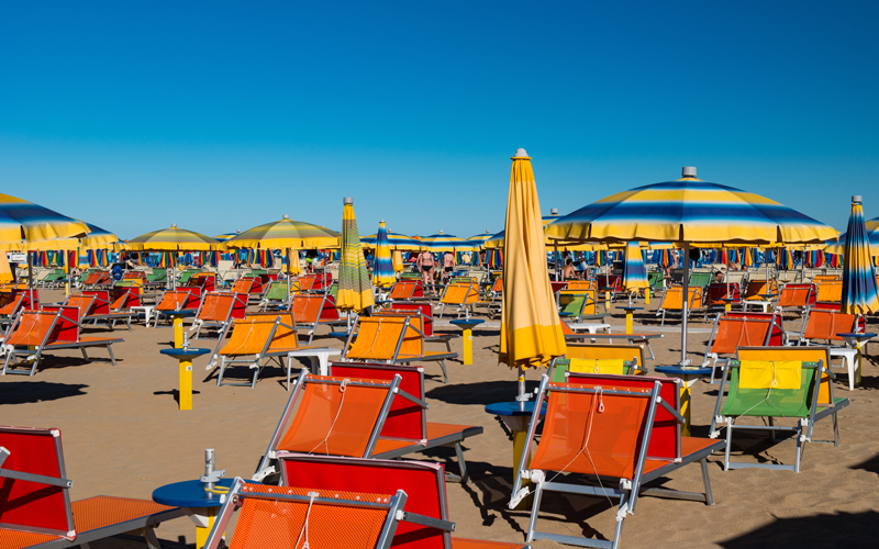 La spiaggia di sabbia si trova a ca. 100 m dalla struttura. Il servizio spiaggia comprende 1 ombrellone e 2 lettini per camera a partire dalla 3° fila (15/05 – 15/09 ca. - in base a condizioni meteo).
