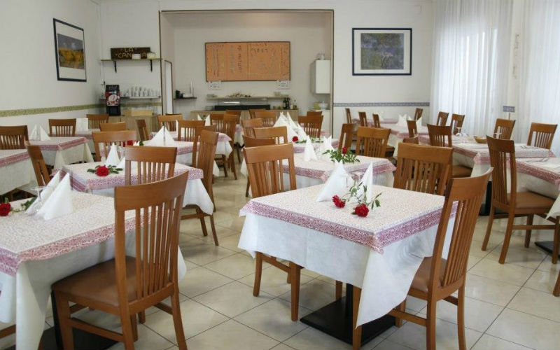 Pensione completa con prima colazione a buffet, pranzo e cena con menu a scelta a tre portate, bevande ai pasti (¼ lt vino, ½ lt acqua), servizio spiaggia con 1 ombrellone e 2 lettini per camera (dal 01/06 al 15/09 ca), eventuale culla da segnalare al momento della prenotazione, parcheggio fino ad esaurimento. Il trattamento inizia con il pranzo del giorno di arrivo e termina con la colazione del giorno di partenza.