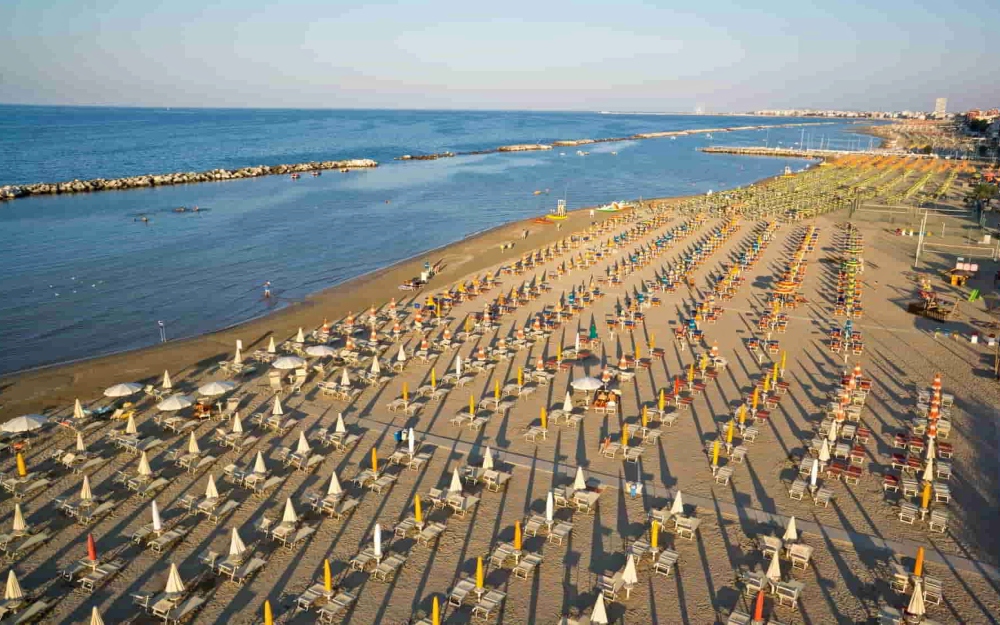 La spiaggia di sabbia si trova a ca. 200 m dalla struttura. Il servizio spiaggia è a pagamento e comprende 1 ombrellone e 2 lettini per camera in file in base alla disponibilità.