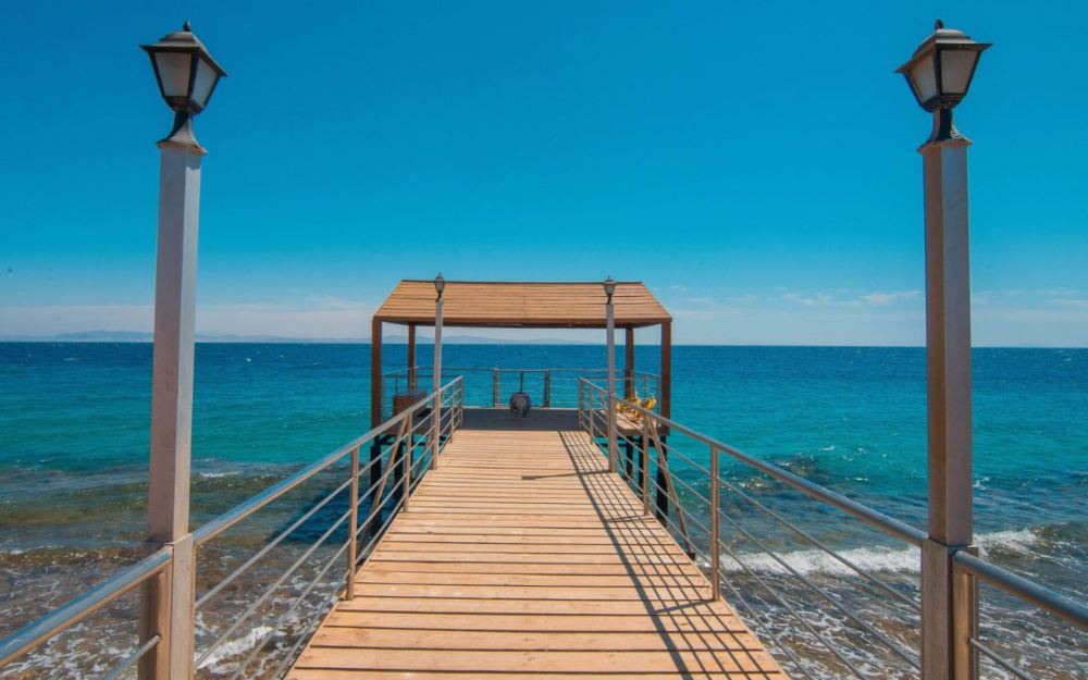 L’hotel si affaccia direttamente sulla sua spiaggia privata attrezzata con sdraio e ombrelloni. Il mare è accessibile tramite il pontile, necessario per oltrepassare la barriera corallina.