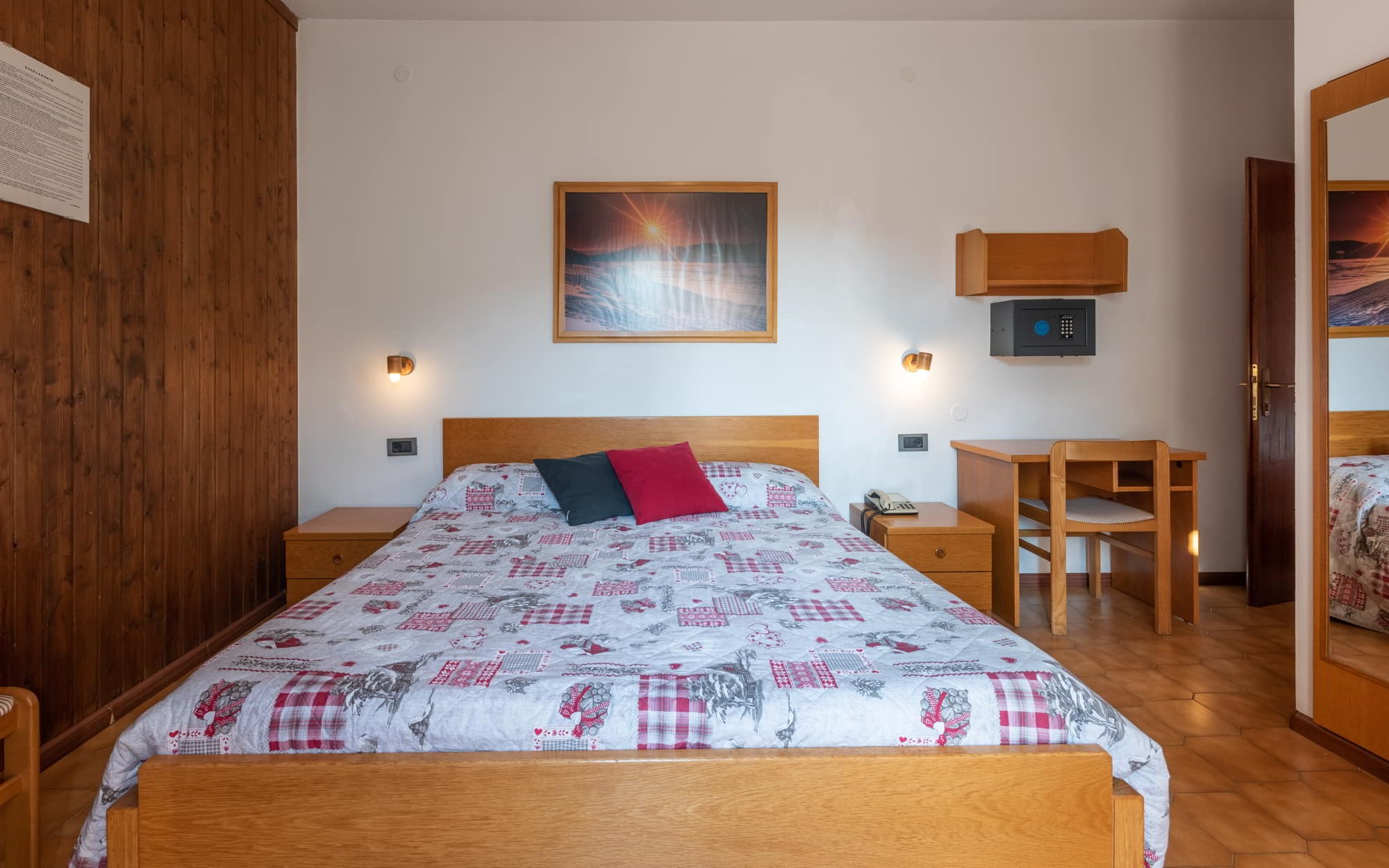 Le camere Standard sono dotate di servizi privati, asciugacapelli, balcone, telefono, TV, cassaforte, collegamento internet Wi-Fi. Le camere quadruple sono dotate di letto a castello.