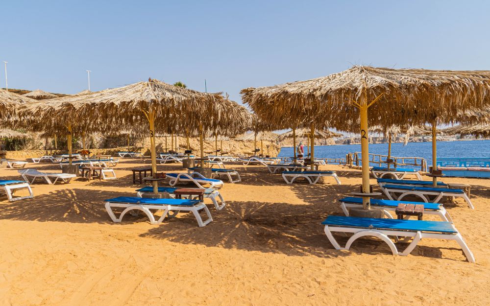 La spiaggia privata è particolarmente apprezzata dagli amanti del diving e dello snorkeling grazie alla bella barriera corallina accessibile tramite apposite scalette oltre la scogliera. La spiaggia su terrazzamenti ed è attrezzata con lettini e ombrelloni. Per gli appassionati di snorkeling, questo tratto di barriera corallina sarà un vero paradiso! A disposizione degli ospiti c’è una navetta per raggiungere la spiaggia, distante 15 minuti a piedi dall'hotel.