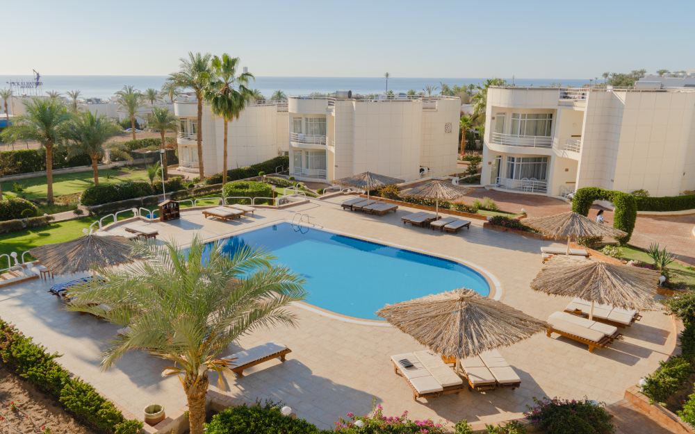 - Pernottamento di 7 notti presso Sharm Reef *** con trattamento di All Inclusive che comprende colazione, pranzo e cena serviti a buffet al ristorante principale “La Luna”. In questo trattamento sono comprese bevande alcoliche ed analcoliche servite al bicchiere ai pasti e fuori pasto presso il pool bar ad orari prestabiliti;