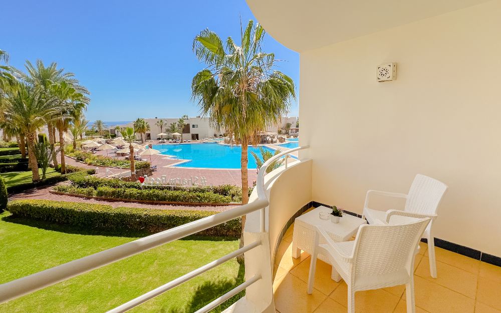 Lo Sharm Reef ha 132 camere spaziose e confortevoli; tutte dispongono di TV satellitare, telefono, aria condizionata, minibar, cassetta di sicurezza. Il bagno in camera dispone di doccia, set di cortesia gratuiti e asciugacapelli. Le camere sono dotate di balcone/patio privato con vista sulla piscina e sul giardino.
