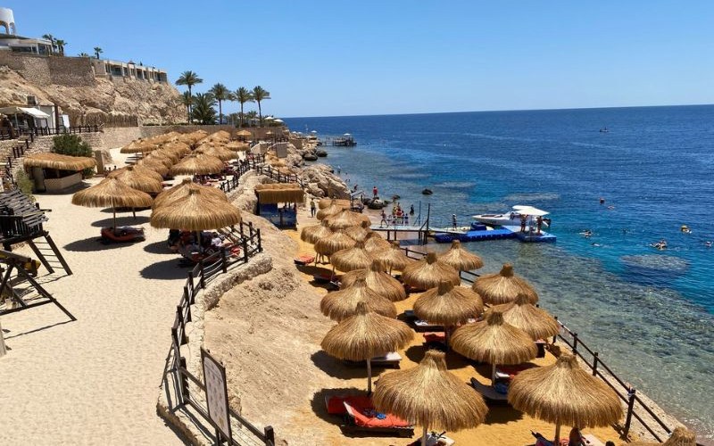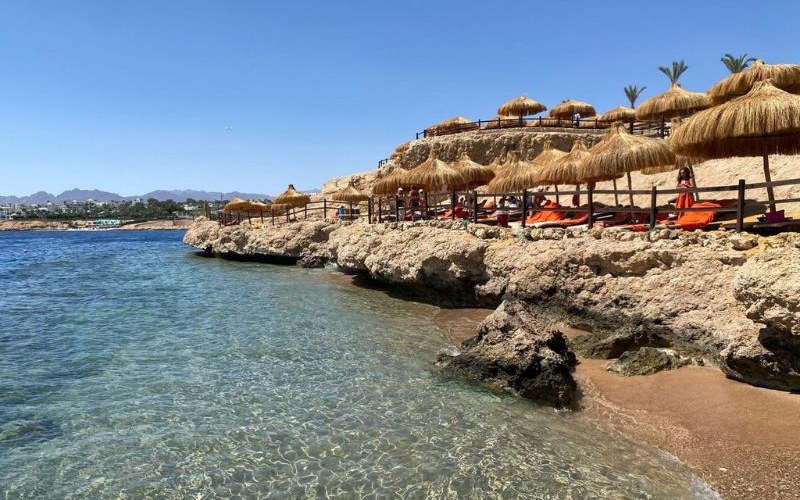 La spiaggia e la barriera corallina distano ca. 300 m e sono condivise con l’hotel gemello Sharm Plaza. Un sentiero a gradini conduce alla spiaggia. A causa della barriera corallina, l'accesso al mare è possibile solo tramite un pontile galleggiante e lo si raccomanda solo a nuotatori esperti (si consiglia l'uso di calzature adatte all'acqua).