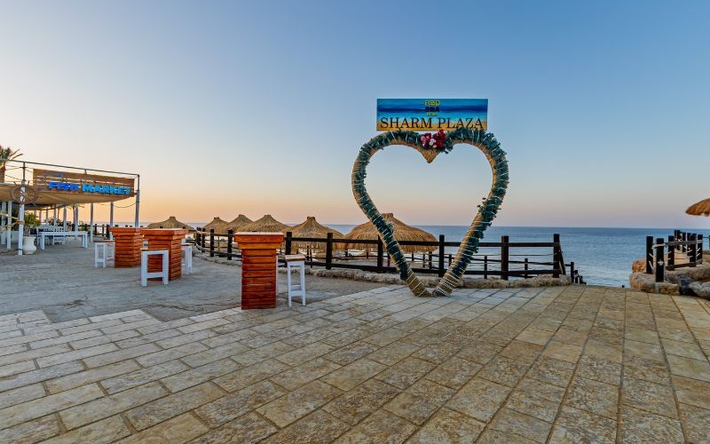 Posizione da sogno con la barriera corallina Far Garden, un punto di partenza ideale per le immersioni e la scoperta del meraviglioso mondo sottomarino del Mar Rosso. La famosa Naama Bay, con numerose opportunità di shopping e intrattenimento, si trova a ca. 6 Km. La spiaggia e la barriera corallina distano ca. 300 m e sono condivise con l’hotel gemello Sharm Plaza. Un sentiero a gradini conduce alla spiaggia. A causa della barriera corallina, l'accesso al mare è possibile solo tramite un pontile galleggiante e lo si raccomanda solo a nuotatori esperti (si consiglia l'uso di calzature adatte all'acqua). Tempo di trasferimento dall’aeroporto circa 30 minuti.