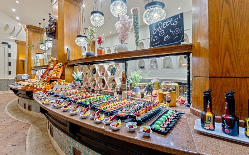 - Pernottamento di 7 notti presso il Sharm Resort **** con il trattamento di all inclusive che comprende prima colazione, pranzo e cena nel ristorante a buffet dell’hotel Sharm Plaza, snack vari, bevande analcoliche e alcoliche locali disponibili dalle ore 10:00 alle ore 24:00 (dopo tale orario solo a pagamento). N.B: è obbligatorio indossare il braccialetto all inclusive, riceverete informazioni dettagliate sul programma all inclusive, orari di apertura di bar e ristoranti e servizi a pagamento direttamente in loco. Tutti i ristoranti à la carte richiedono una prenotazione anticipata; alcuni piatti e bevande sono a pagamento. L’hotel si riserva il diritto di apportare modifiche. Gli ospiti riceveranno informazioni dettagliate su tutti i servizi all'arrivo in hotel;