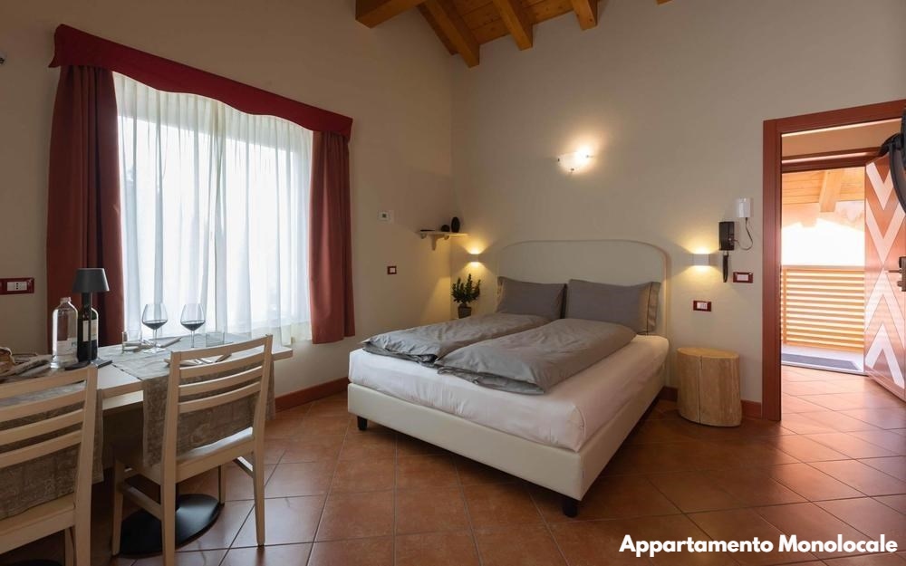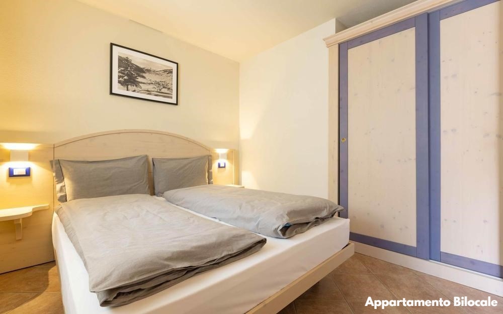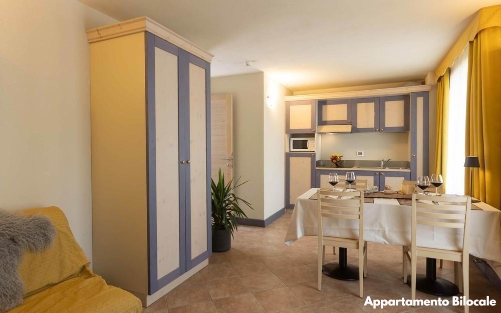Gli appartamenti bilocali possono ospitare fino a 5 persone e sono dotati di servizi privati, asciugacapelli, angolo cottura attrezzato con frigorifero e microonde e zona giorno 2 divani letto (uno singolo e uno alla francese), camera con letto matrimoniale, TV satellitare, collegamento internet Wi-Fi e cassaforte.