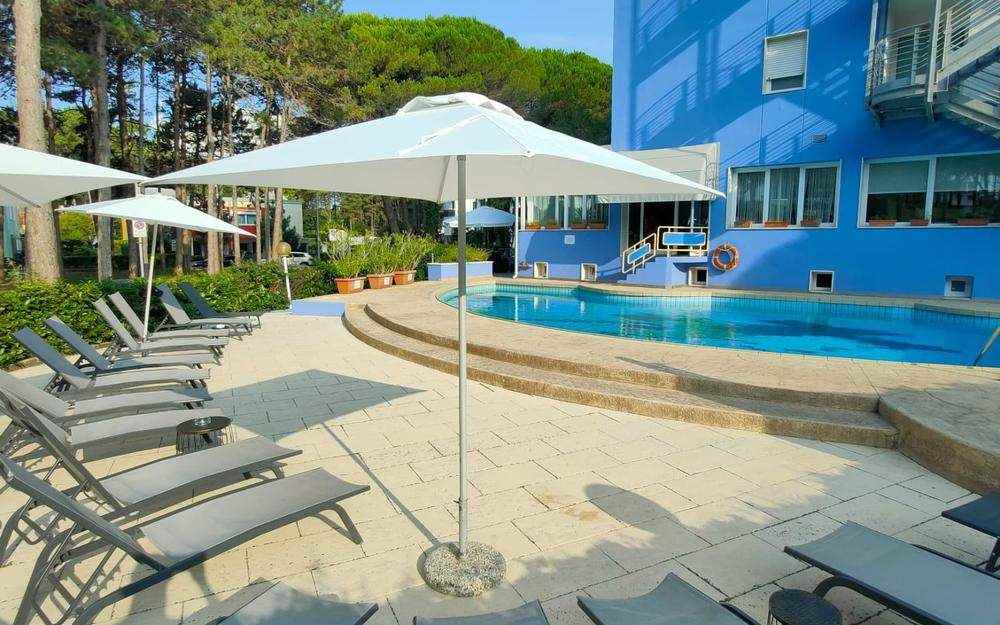 - Utilizzo della piscina scoperta con lettini e ombrelloni fino ad esaurimento e piscina per bambini integrata;