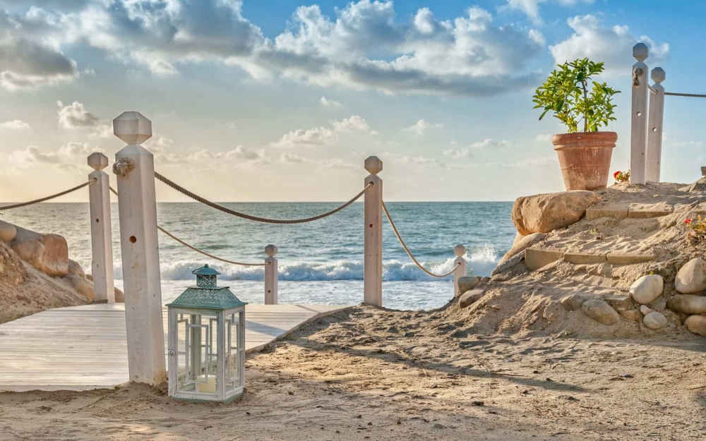 La spiaggia privata di sabbia fine si trova a 5 Km dalla struttura. L'hotel mette a disposizione una navetta ad orari prestabiliti. Il servizio spiaggia comprende ombrelloni e sdraio fino ad esaurimento.