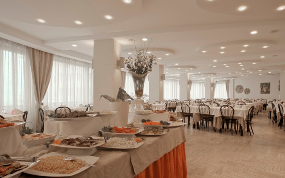 - Mezza pensione con prima colazione rinforzata a buffet e cena a 3 portate con menu a scelta, buffet di verdure e insalate e buffet di dolci;