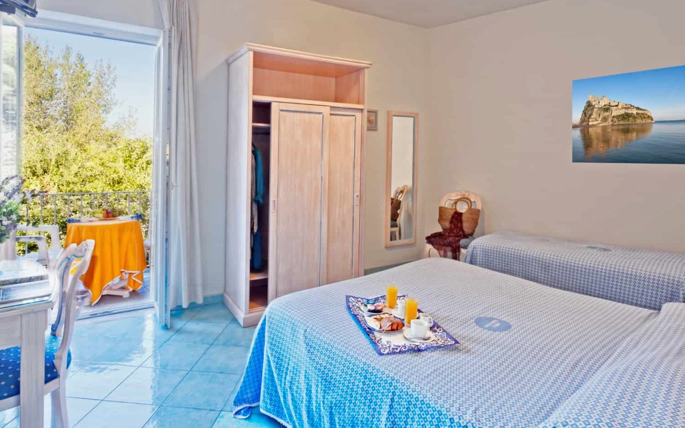 Le giornate si animano con escursioni in barca intorno all’isola, snorkeling nelle acque cristalline o trekking panoramici sul Monte Epomeo. E al rientro, l’Hotel Cleopatra ti accoglie con comfort e relax.