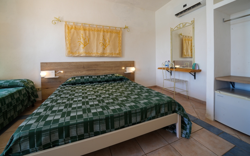 Le camere Standard immerse nella macchia mediterranea con ingresso indipendente, distribuite in diverse file sul declivio che digrada verso il mare. Le camere più in alto, che si raggiungono tramite camminamenti e scalinate in pietra, godono di una vista mozzafiato sulla baia con tramonti spettacolari. Si dividono in doppie, matrimoniali, triple e quadruple con letto a castello. Dispongono tutte di tv, mini-frigo, cassaforte, aria condizionata, ventilatore a pale, servizi privati con doccia e asciugacapelli. Sono disponibili camere per ospiti diversamente abili