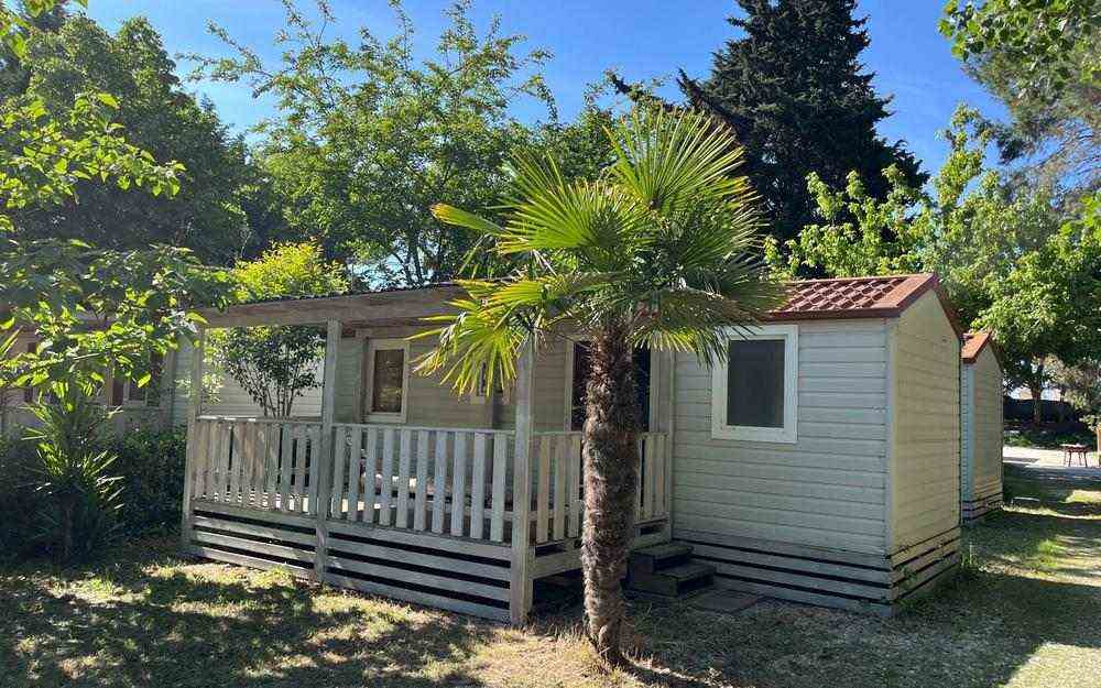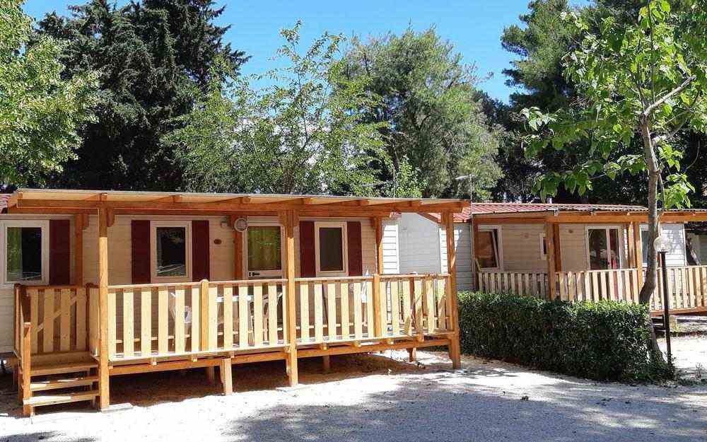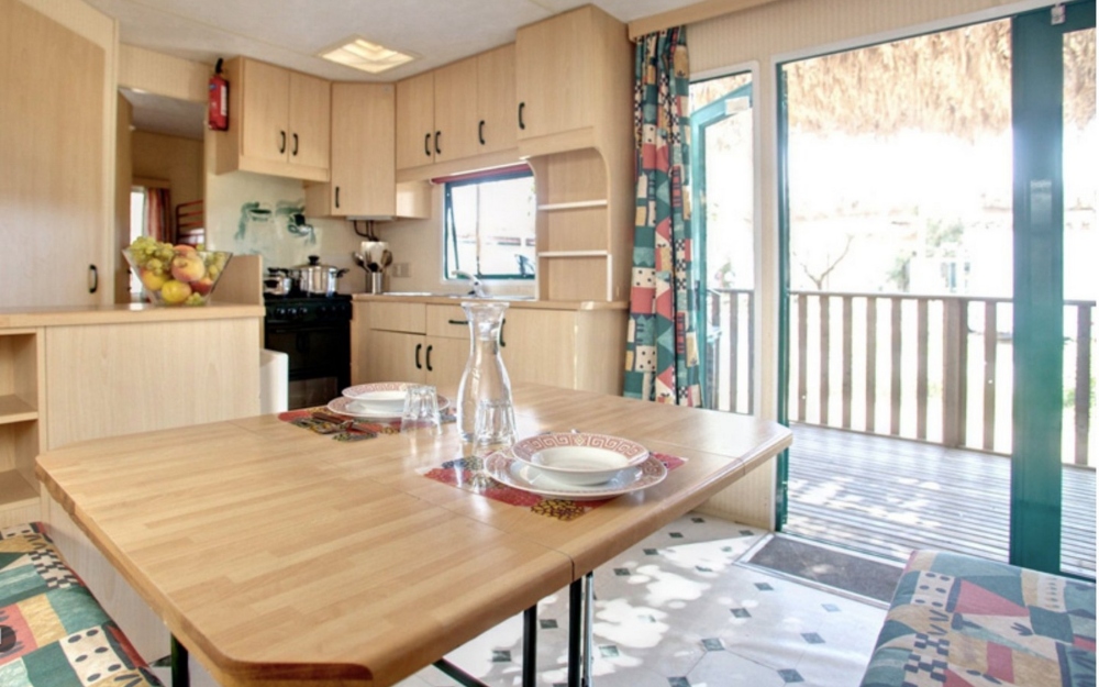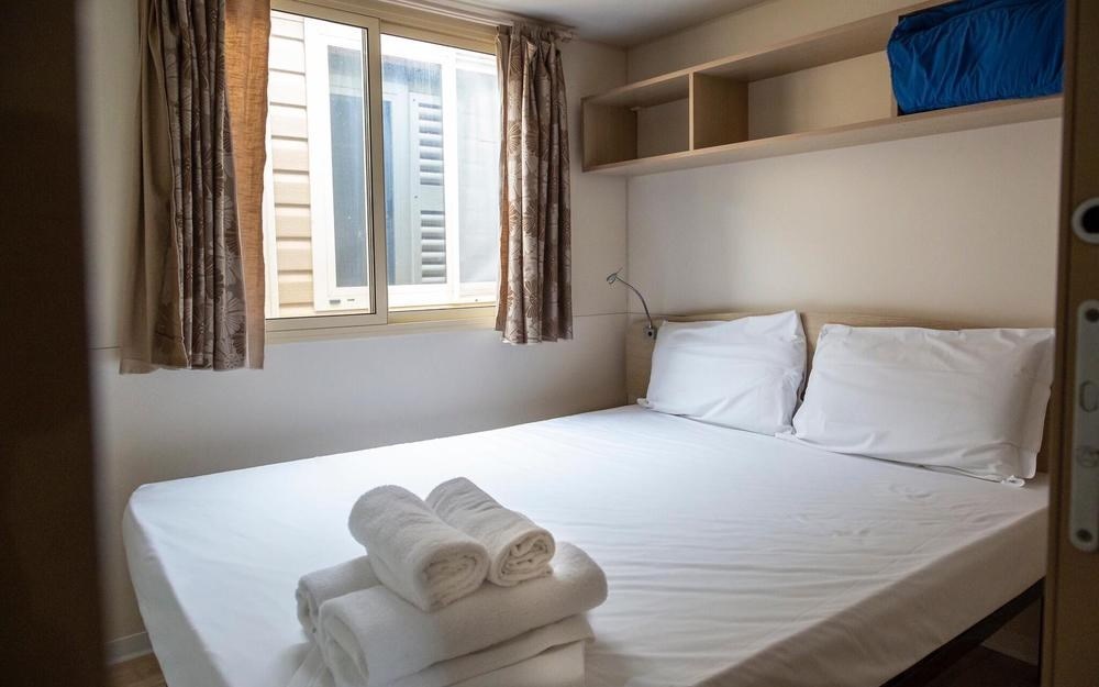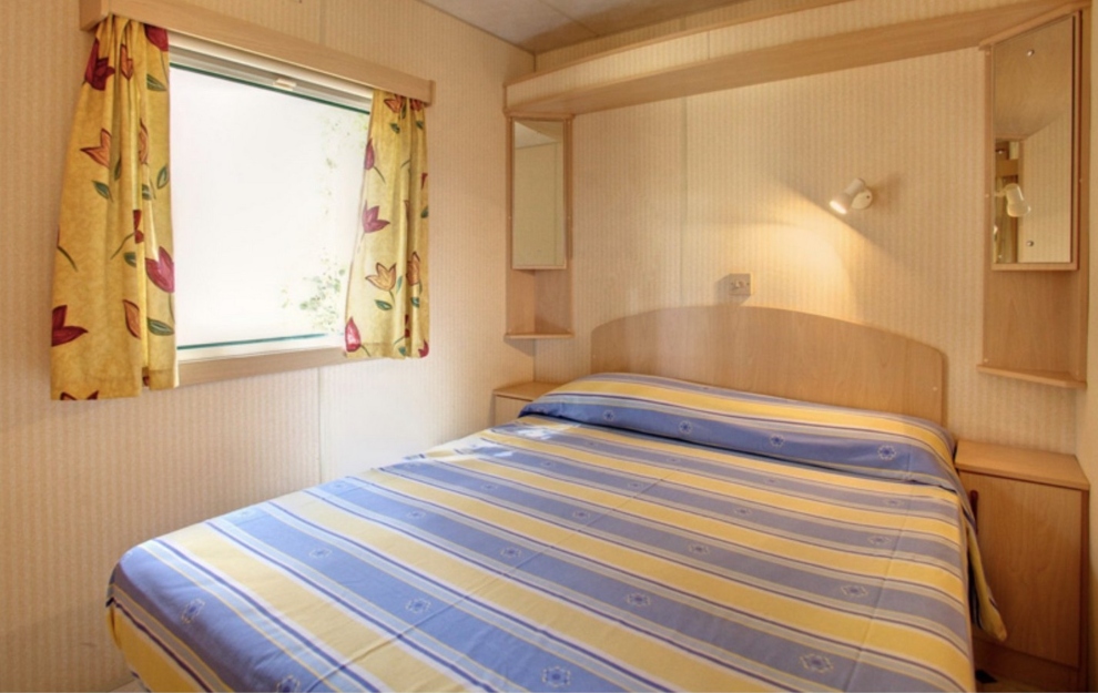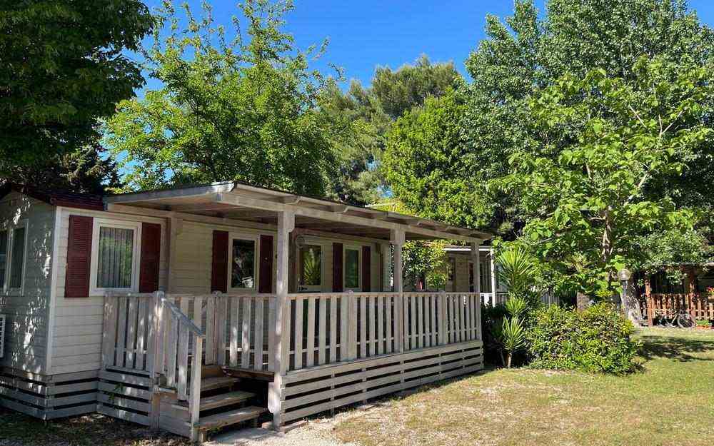Le Mobilhome trilocale Ginestra sono dotate di servizi privati, 1 camera matrimoniale, 1 camera con letto singolo e letto a castello, zona giorno con angolo cottura, TV satellitare, collegamento internet Wi-Fi, aria condizionata e veranda.