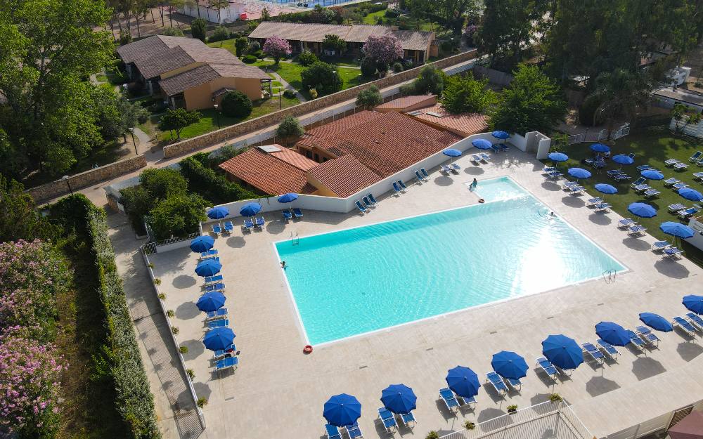 Il complesso immerso nel verde (196 unità abitative tra camere hotel e bungalow) è formato da un corpo centrale recentemente rinnovato, disposto su 2 livelli serviti da ascensore, dove sono ubicate le camere hotel, la hall, il ristorante, ed il bar centrale. Due schiere di bungalow in muratura, dislocati verso il mare nel verde antistante, completano la struttura. La struttura dispone di bar nel corpo centrale, sala TV, bazar, ufficio escursioni, giardino e parcheggio esterno non custodito, piscina, campo polivalente/calcetto, campo da tennis, freccette, campo da beach volley, area giochi per i bambini ed anfiteatro recentemente costruito.