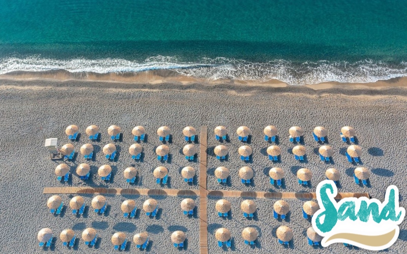 La struttura gode una posizione privilegiata sulla spiaggia di Mastichari, famosa per le sue spiagge ‘caraibiche’ con sabbia chiara ed acque trasparenti. La spiaggia attrezzata mette a disposizione degli ospiti ombrelloni, sedie e sdraio (prenotabili).