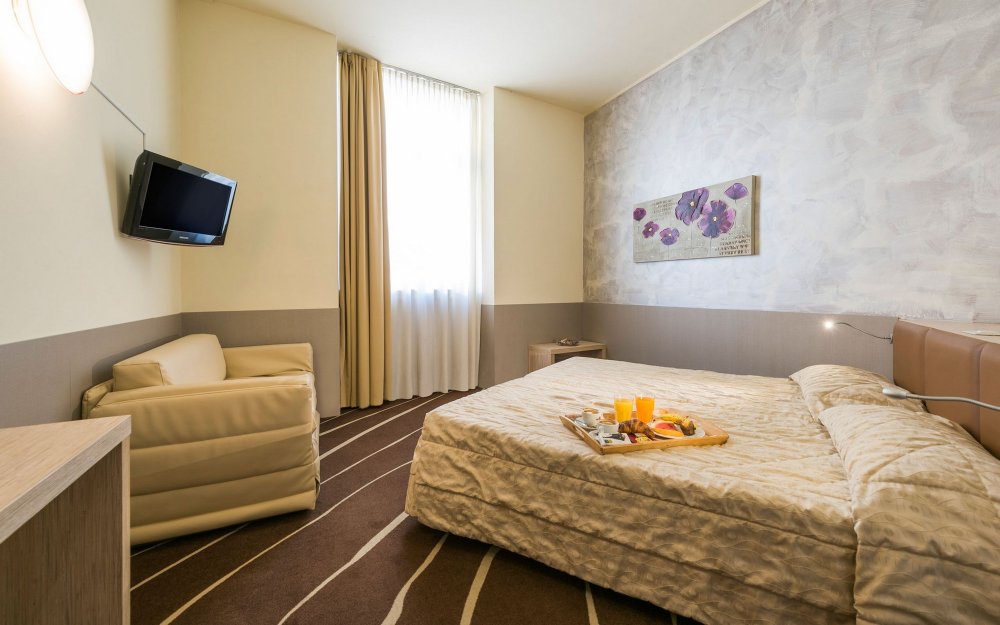 Le camere Family (ca. 26 mq.) sono dotate di servizi privati, asciugacapelli, telefono, TV satellitare, minibar (consumazioni a pagamento), cassaforte, collegamento internet Wi-Fi. E' adatta ad ospitare 2 adulti e 1 bambino in letto aggiuntivo.