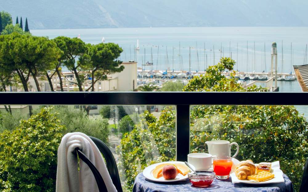 Il Grand Hotel Riva è un elegante hotel in stile liberty situato nel cuore del centro storico di Riva del Garda, proprio accanto al castello veneziano La Rocca e affacciato sul lago. Immerso nel verde e circondato da un paesaggio mozzafiato, offre camere confortevoli e raffinate con tutti i servizi di un 4 stelle. Al quinto piano, il ristorante panoramico Bel Air regala una splendida vista sulla Fraglia della Vela, perfetta per una cena suggestiva. Nei dintorni si possono esplorare i vicoli storici della città, visitare musei, passeggiare lungo sentieri panoramici o praticare sport all’aria aperta tra lago e montagne. Una destinazione ideale per chi cerca relax, eleganza e natura.