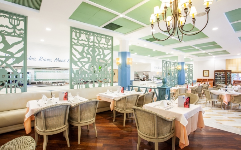 - Pernottamento di 7 notti presso Grupotel Playa Club **** con trattamento di mezza pensione che comprende colazione e cena serviti a buffet al ristorante principale internazionale;