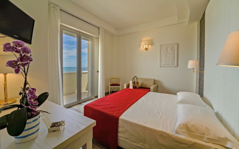 Le camere Executive possono ospitare fino a 4 persone e sono dotate di servizi privati, asciugacapelli, aria condizionata, televisione, frigorifero (consumazioni a pagamento), collegamento internet Wi-Fi, balcone vista mare laterale.