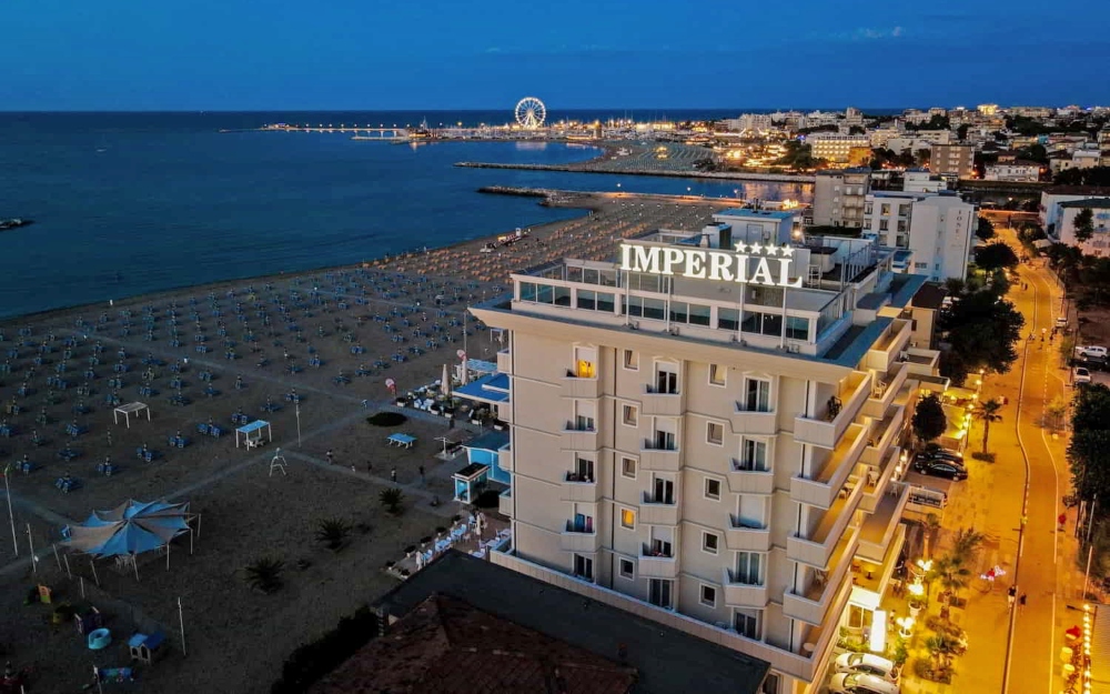 Affacciato direttamente sul mare di Rivabella, l'Hotel Imperial Beach è il punto di partenza ideale per vivere un’estate tra relax, divertimento e scoperta della Riviera Romagnola. A pochi minuti si trova il cuore vivace di Rimini (a ca. 3.3 km), con il suggestivo Ponte di Tiberio (a ca. 2.4 km) e il borgo di Borgo San Giuliano, perfetto per una passeggiata serale tra murales e locali tipici. Per chi ama l’adrenalina e il divertimento in famiglia, l’imperdibile Italia in Miniatura (a ca. 5.6 km) regala un viaggio sorprendente tra le bellezze d’Italia in formato ridotto. Gli spiriti romantici possono spingersi fino a Santarcangelo di Romagna (a ca. 10 km), tra grotte tufacee e scorci medievali, oppure scegliere una giornata panoramica nella Repubblica di San Marino, tra castelli e viste mozzafiato. Gli amanti della natura possono esplorare la ciclabile sul lungomare al tramonto o concedersi un’escursione in barca lungo la costa. E dopo una giornata intensa, niente di meglio che un aperitivo sulla spiaggia, tra musica e tramonti infuocati.