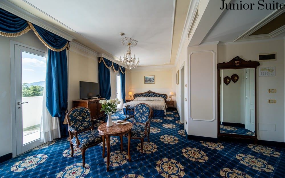 Le camere Junior Suite (ca. 40 mq) sono dotate di servizi privati, asciugacapelli, aria condizionata, telefono, radio, TV satellitare, minibar (consumazioni a pagamento), collegamento internet Wi-Fi, cassaforte e balcone con vista città. Letti separati su richiesta.