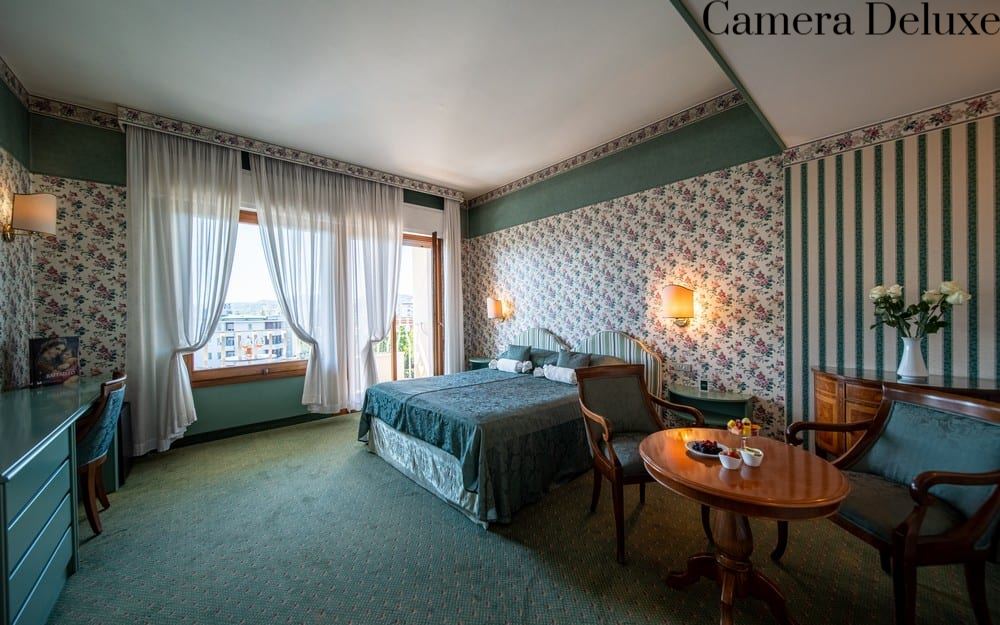 Le camere Deluxe (ca. 21 mq) sono dotate di servizi privati, asciugacapelli, aria condizionata, telefono, radio, TV satellitare, minibar (consumazioni a pagamento), collegamento internet Wi-Fi, cassaforte e balcone con vista giardino. Letti separati su richiesta.