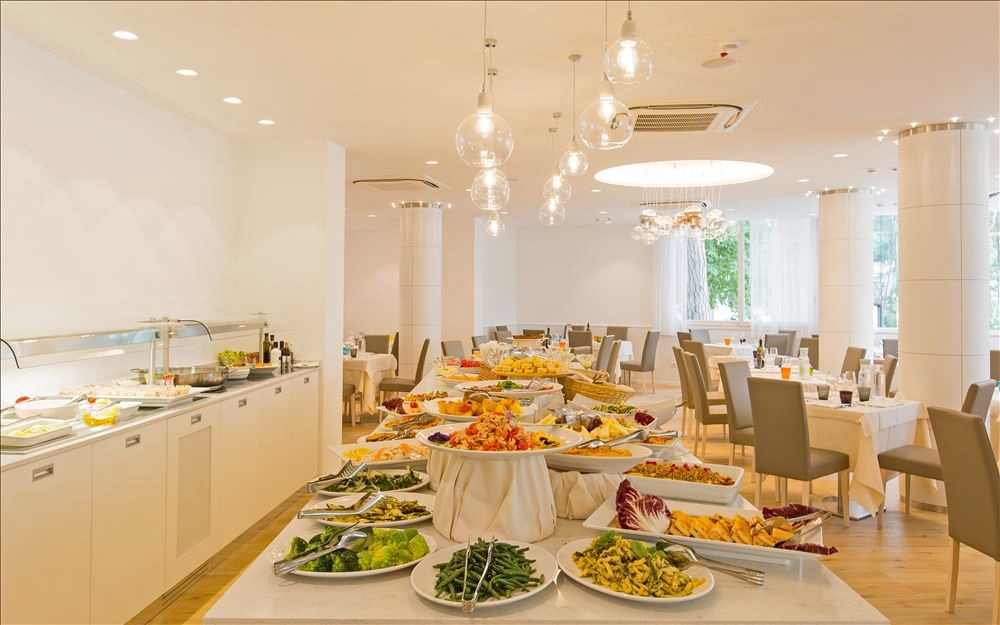 - Mezza pensione con prima colazione rinforzata a buffet e cena a 3 portate con menù a scelta e buffet di antipasti;