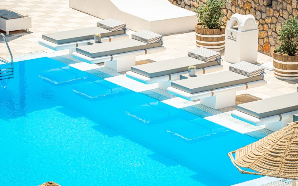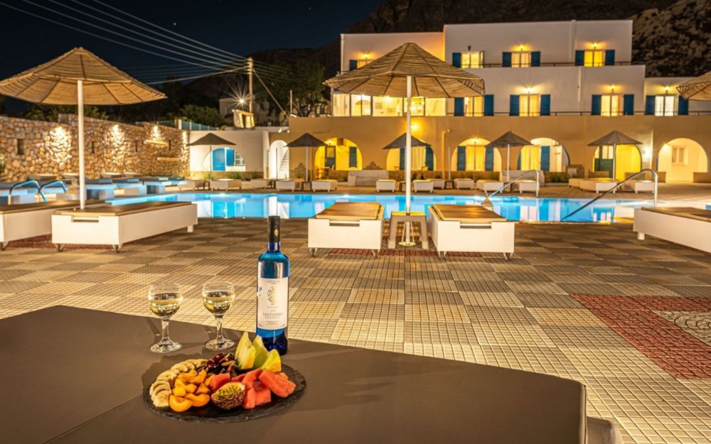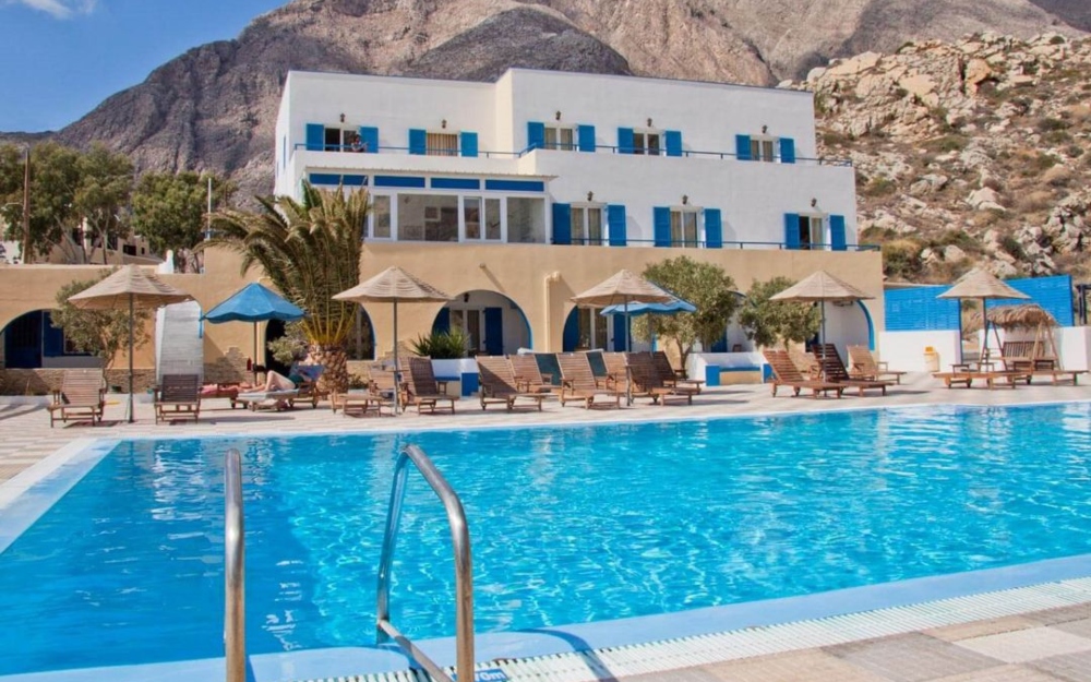 La spiaggia di Perissa Beach, caratterizzata da ghiaia e ciottoli, dista circa 500 metri dall’hotel. Il mare limpido e la lunga distesa costiera la rendono ideale per giornate di relax e passeggiate sul lungomare.