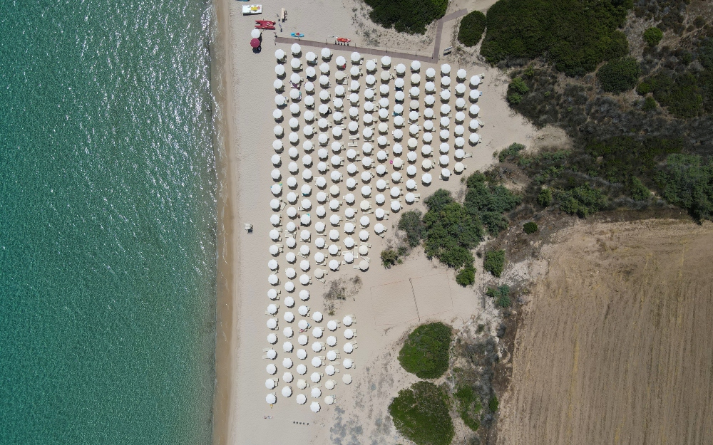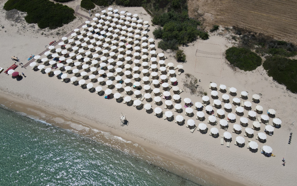 La spiaggia di sabbia bianca fine, a ca. 500 m dal corpo centrale ed è raggiungibile percorrendo all’interno del Resort un comodo camminamento in piano oppure viaggiando con una comoda navetta elettrica, con punto di raccolta all’inizio del camminamento. Il servizio spiaggia incluso nella Tessera Club comprende 1 ombrellone e 2 lettini per camera a partire dalla 3° fila (la prima e la seconda fila sono a pagamento e prenotabili in loco).