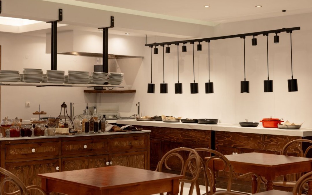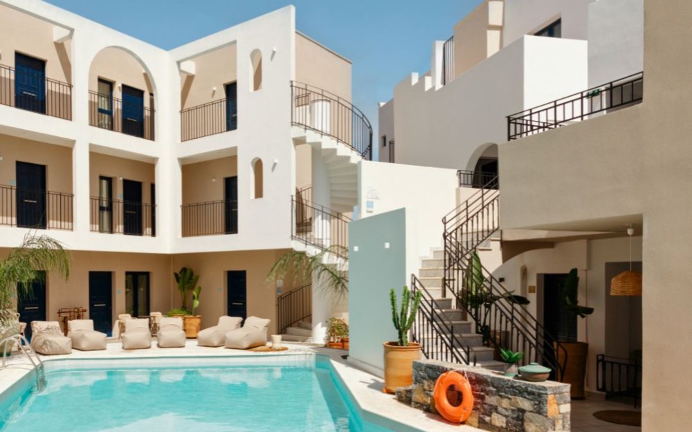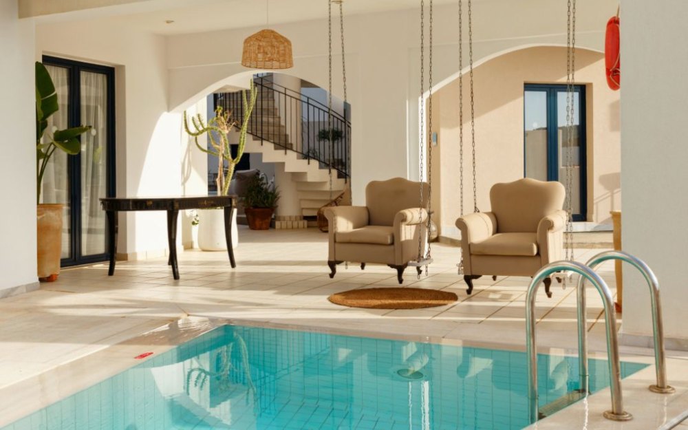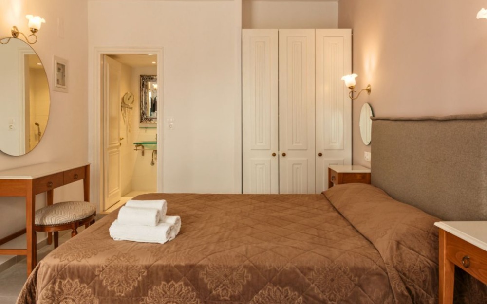 Le 70 eleganti camere sono tutte dotate di aria condizionata, balcone o patio, set da bagno, asciugacapelli e TV a schermo piatto, collegamento internet Wi-Fi gratuito. Le camere sono tutte molto particolari, una diversa dall’altra con particolari di design che combinano moderno e tradizionale. L’architetto italo-greco della struttura ha costruito un ambiente esclusivo e di design che si rispecchia in tutti gli ambienti dell’hotel e particolarmente nelle camere.