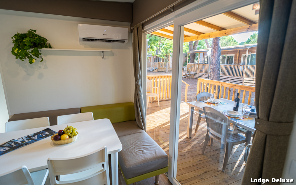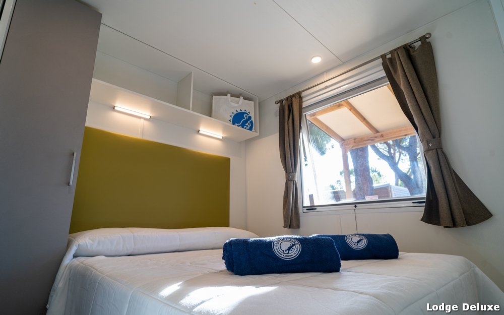 Le sistemazioni Lodge Comfort (30mq ca.) dispongono di servizi privati, angolo cottura, 1 camera matrimoniale ed 1 camera con 2 letti singoli, aria condizionata, TV satellitare, frigo, veranda con tavoli e sedie, divano letto e stoviglie. Gli animali non sono ammessi in questa tipologia.