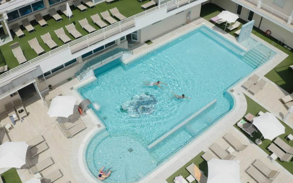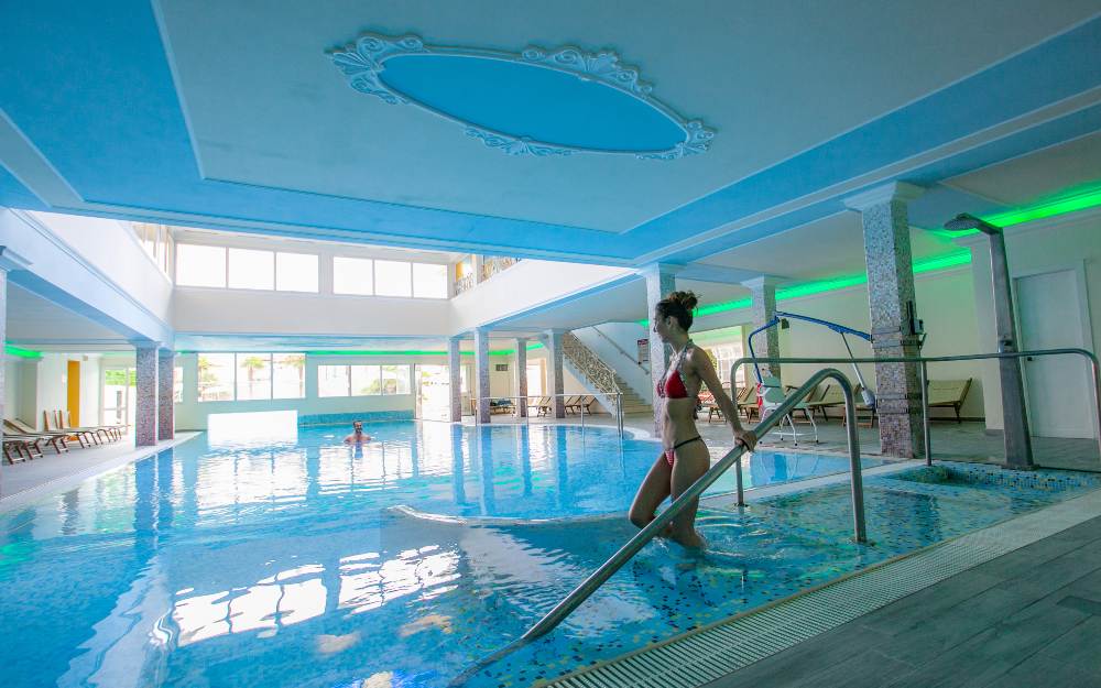 - Utilizzo delle piscine scoperta e coperta con acqua termale dotate di lettini idromassaggio cervicali, linfodrenanti e plantari, cascate, “botti” idromassaggi e lettini ed ombrelloni fino ad esaurimento (secondo gli orari di apertura in loco);