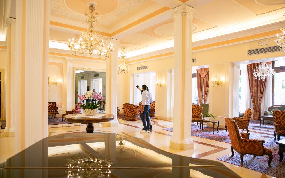 L’Hotel Palace Meggiorato ad Abano Terme è un rifugio termale situato nel cuore della città, nota per le sue acque curative e il paesaggio suggestivo degli Euganei. Gli ospiti possono rilassarsi nelle piscine termali con idromassaggi e grotta termale. Nei dintorni è possibile visitare il Castello del Catajo (a ca. 9.3 Km) con i suoi affreschi storici e il suggestivo borgo di Este (a ca. 25.8 Km), famoso per il suo centro medievale. Gli appassionati di natura possono esplorare le riserve naturali del Parco Regionale dei Colli Euganei o fare escursioni tra vigneti e uliveti. La vicina città di Vicenza (a ca. 47 Km) offre monumenti di grande valore architettonico, come le opere di Palladio. Durante tutto l’anno Abano Terme ospita eventi culturali e sagre gastronomiche che permettono di scoprire le tradizioni locali unendo relax natura e cultura in ogni stagione.