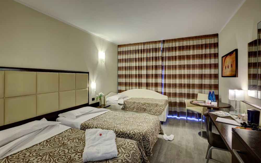 Le camere sono dotate di servizi privati, asciugacapelli, aria condizionata, telefono, TV satellitare, minibar (consumazioni a pagamento), accappatoio, cassaforte, collegamento internet Wi-Fi, divano letto, balcone o terrazzo.