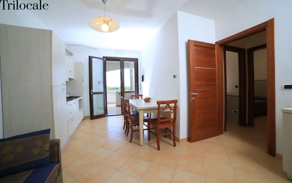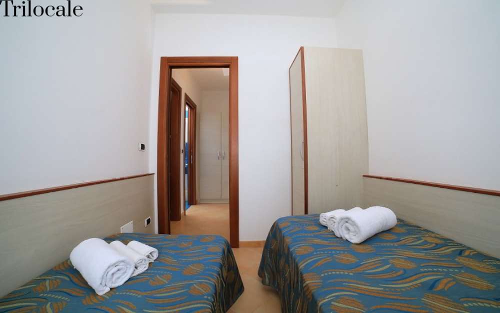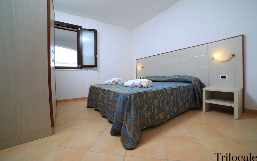Gli appartamenti Trilocali del comparto B, piano terra o al primo piano, dispongono di servizi privati, angolo cottura, 2 camere da letto separate (camera matrimoniale e camera con divano letto doppio o letto a castello), aria condizionata, telefono, TV sat, letto a castello, Mini frigo (consumazioni a pagamento), veranda e divano letto.