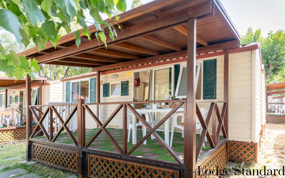 Le sistemazioni Lodge Standard (ca. 30mq) dispongono di servizi privati, terrazzo, angolo cottura, 2 camere da letto separate, aria condizionata, TV, frigo, tavoli e sedie in esterno e stoviglie.