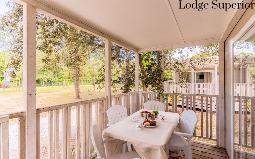 Le sistemazioni Lodge Superior (ca. 34mq) dispongono di servizi privati, terrazzo, angolo cottura, 2 camere da letto separate, aria condizionata, TV, frigo, tavoli e sedie in esterno e stoviglie. Gli animali non sono ammessi in questa tipologia di sistemazione.