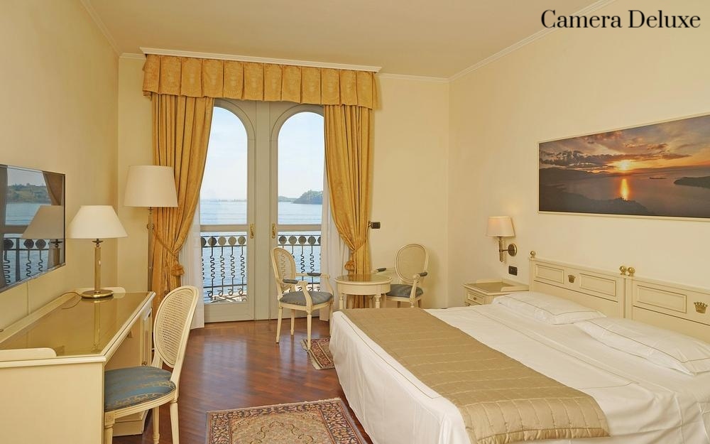 Le camere Deluxe dispongono di servizi privati, aria condizionata, telefono, TV satellitare, minibar (consumazioni a pagamento), cassaforte, collegamento internet Wi-Fi. Prestigiose ed ampie camere finemente arredate in stile liberty, tutte con balcone alla francese e vista lago.
