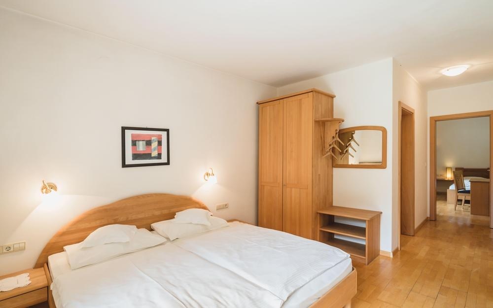 Nei dintorni del B&B St. Nikolaus a San Nicolò si trovano molte attività immerse nella natura. Dal paese parte direttamente il Sentiero dei Masi, una passeggiata panoramica tra antichi masi, ideale anche per brevi tratti. A circa 6 km si raggiunge la cabinovia della Schwemmalm, da cui partono escursioni in quota e itinerari tra malghe. Il suggestivo Lago di Zoccolo, perfetto per una camminata rilassante, dista circa 13 km. Proseguendo verso il fondo valle, a 9 km, si trovano i famosi larici millenari di Santa Gertrude e la storica segheria Lahnersäge. Per un’escursione gastronomica sono consigliate le malghe della zona, come la Kuppelwieser Alm, a ca. 8km dalla struttura.