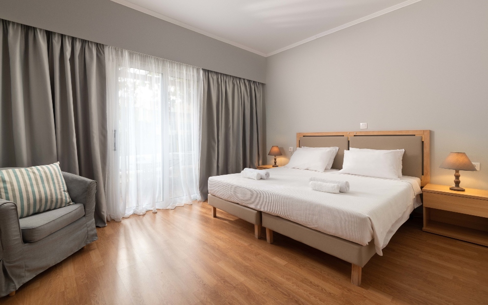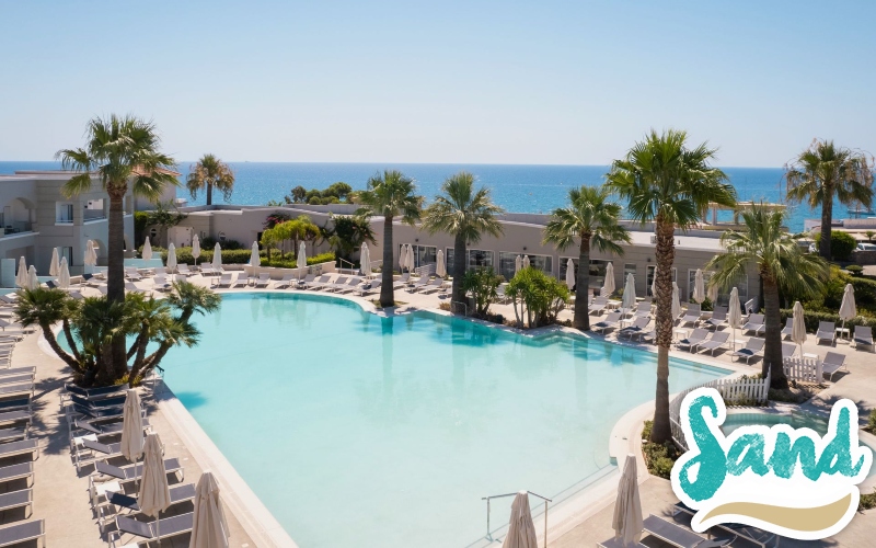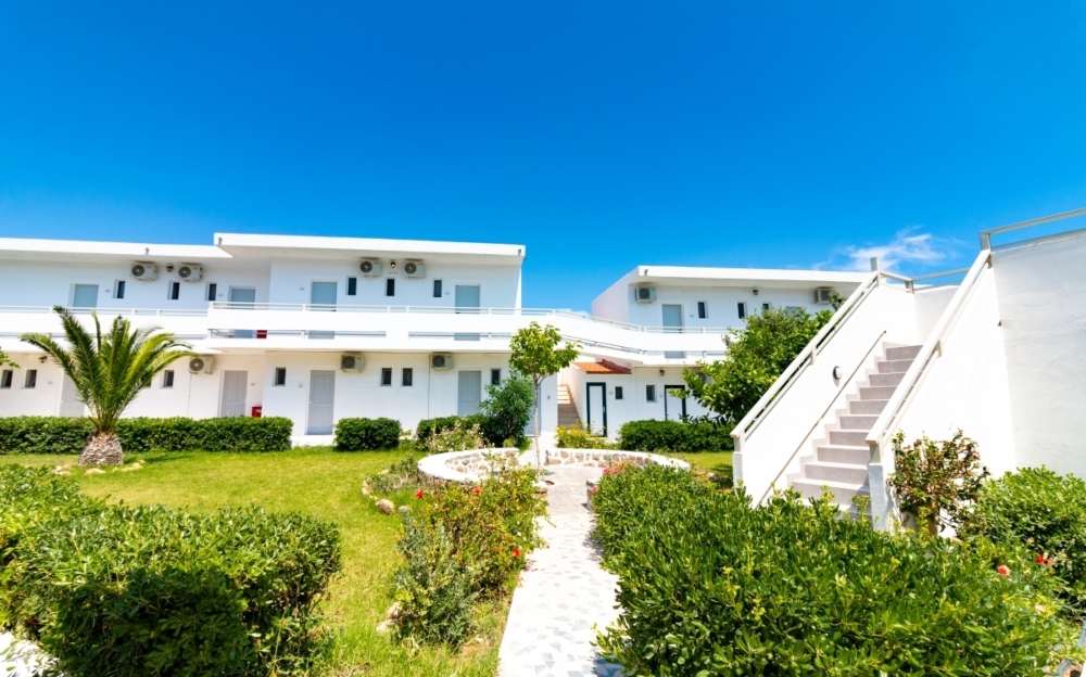 - Pernottamento di 7 notti presso Sun Beach Lindos *** con trattamento di all inclusive che comprende colazione, pranzo e cena serviti in ristoranti selezionati. Incluse acqua e bevande analcoliche (10:00–22:00), oltre a birra, vino, tè e caffè in orari prestabiliti;
