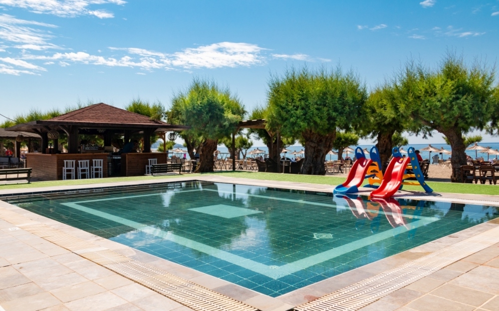 - Utilizzo della piscina scoperta di acqua dolce con area separata per bambini (aperta da maggio ad ottobre) dotata di lettini ed ombrelloni fino ad esaurimento;