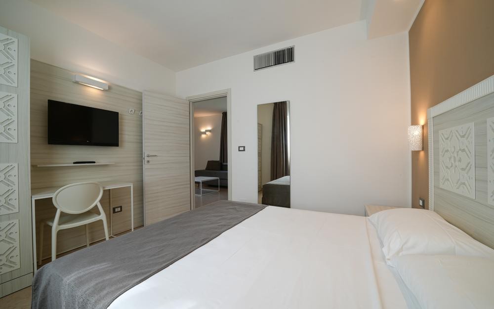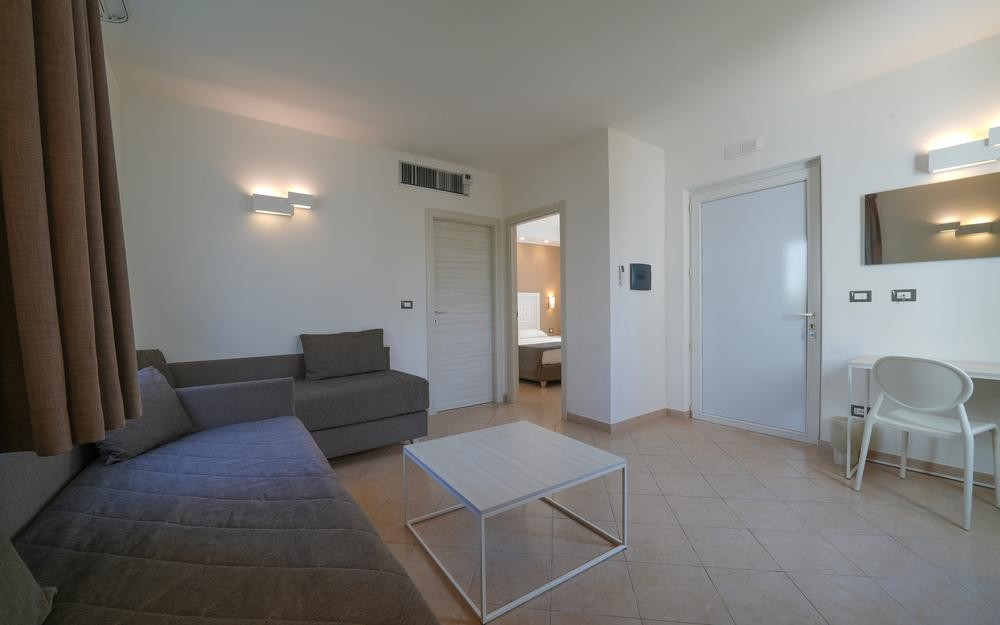 Le Villette Superior 44 mq ca, per 3/4 persone, sono totalmente rinnovate negli arredi, e dispongono di soggiorno con 2 divani letto singoli e camera matrimoniale.