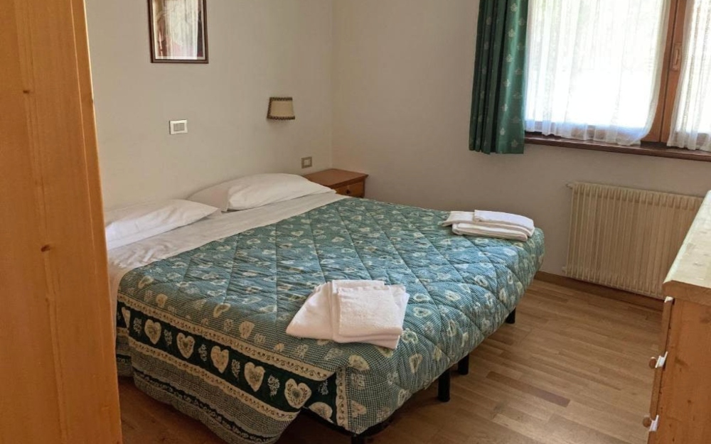 Gli appartamenti bilocali (di ca. 39-45 mq) dispongono di servizi privati, asciugacapelli, angolo cottura attrezzata con microonde e frigorifero, divano letto, 1 camera da letto separata, letto a castello, televisione, collegamento internet Wi-Fi e balcone vista monte.