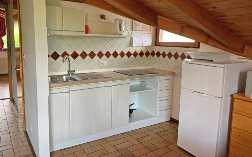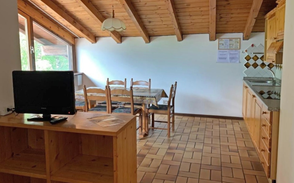 Gli appartamenti trilocali (di ca. 55 mq) dispongono di servizi privati, asciugacapelli, angolo cottura attrezzata con microonde e frigorifero, divano letto, 2 camera da letto separate, letto a castello, televisione, collegamento internet Wi-Fi e balcone vista monte.