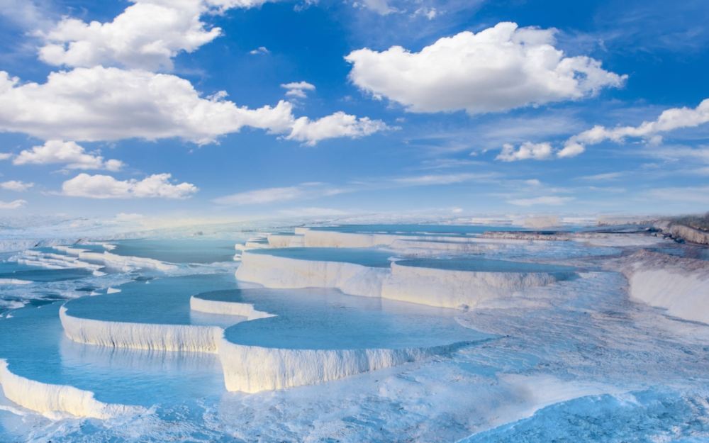 Possibilità di partecipare all’escursione (facoltativa, a pagamento) di Jeep Safari, uno dei modi migliori per godersi i paesaggi unici della Cappadocia, le sue valli e l’incredibile mix di formazioni rocciose e dolci colline. Un itinerario ricco di tappe suggestive per fotografare i paesaggi e le caratteristiche mongolfiere. Prima colazione in albergo. Partenza per Pamukkale attraverso valli e catene montuose. Visita del uno dei Caravanserragli durante il percorso che risalgono al periodo dei Selciuchidi. Pranzo in punti di ristoro lungo la strada o presso dei distributori ristorante. Arrivo a Pamukkale e visita dell’antica Hierapolis che, distrutta da un terremoto e ricostruita nel 17 d.C., ebbe il suo massimo splendore nel II e III secolo d.C. Visita di Pamukkale, dove i visitatori saranno sorpresi di vedere sul pendio della collina e addossate le une alle altre, decine di enormi vasche formatesi dal lento e millenario scorrere dell’acqua calcarea. Sembra che il tempo si sia fermato e le cascate di una gigantesca fontana siano pietrificate come suggerisce il nome del luogo Pamukkale che tradotto in italiano significa “fortezza di cotone”. Breve sosta ad un laboratorio di tessuti e l’arrivo a Pamukkale nel tardo pomeriggio. Sistemazione alle camere riservate. Possibilità di un bagno nella piscina termale dell’albergo. Cena e pernottamento in albergo.