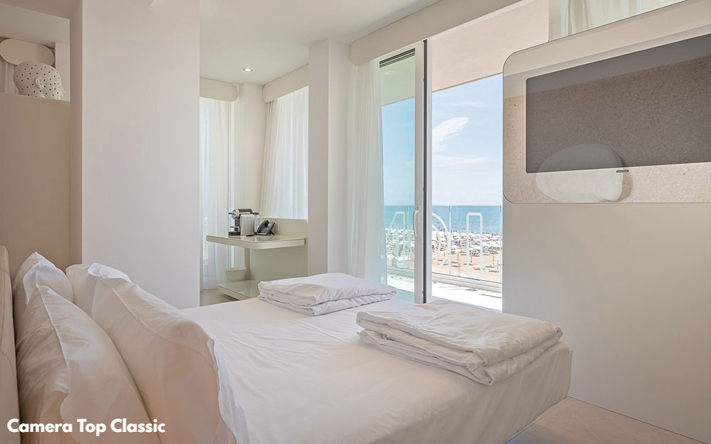 - Servizio spiaggia con 1 ombrellone e 2 lettini per camera a partire dalla 3° fila;